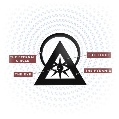 Uma representação da Luz pode ser vista num círculo iluminado do Juramento Eterno dos Illuminati, envolvendo a Pirâmide e o Olho Que Tudo Vê.